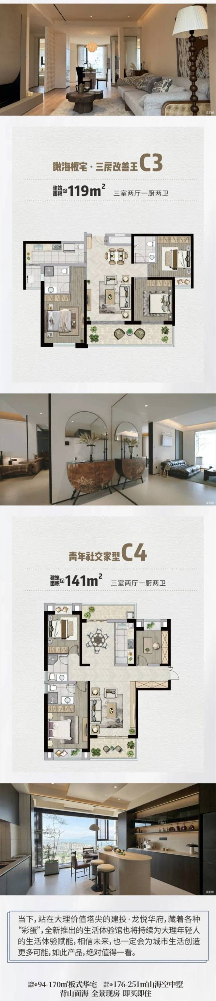 大理龙悦华府,建面约94-170㎡板式华宅;建面约176-251㎡山海空中墅;背山面海全景现房,即买即住!