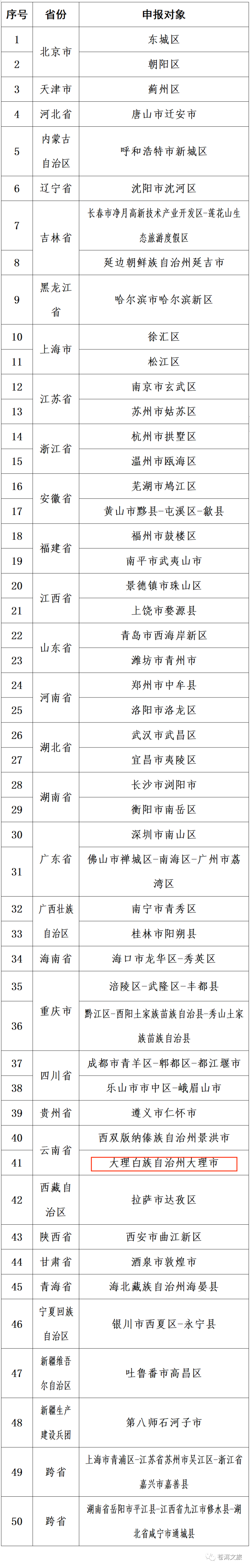 近日,文化和旅游部、自然资源部、住房城乡建设部联合发布通知,公布国家文化产业和旅游产业融合发展示范区建设单位名单,大理白族自治州大理市等50个单位入选。