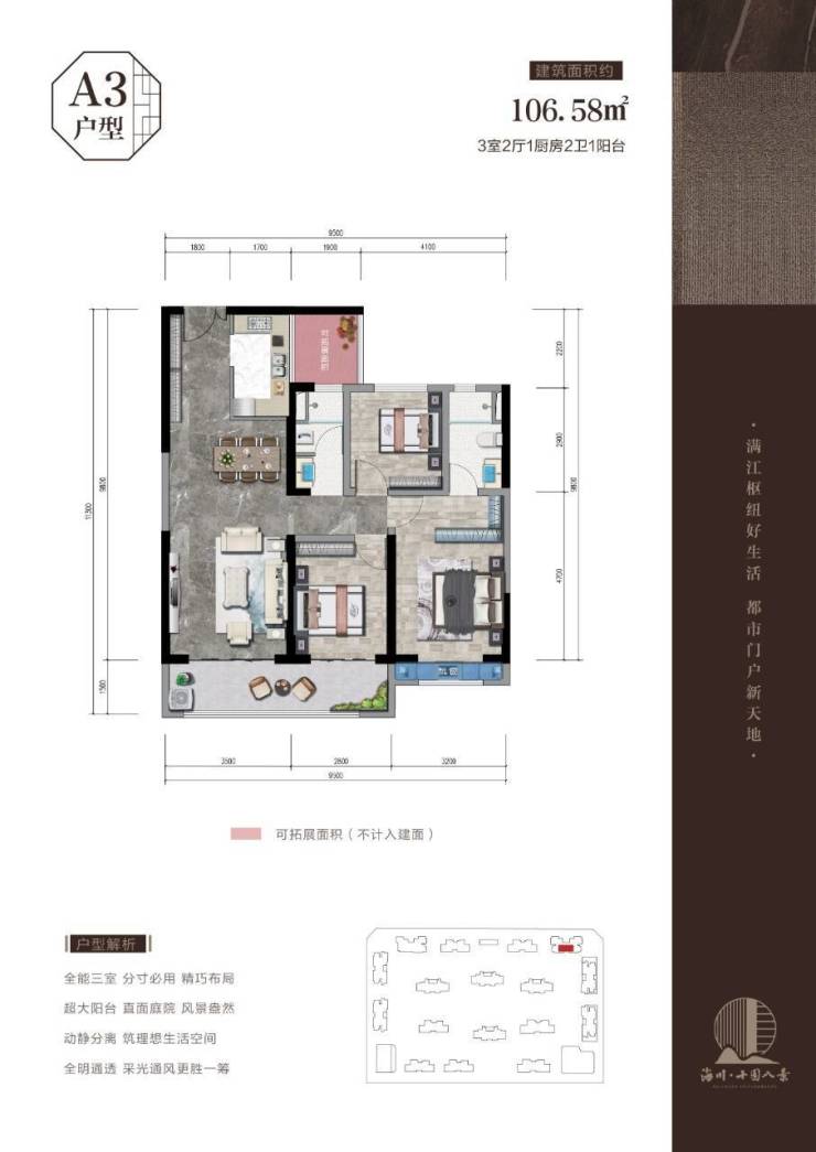 9、更符合客户需求的户型(106-147平三房四房),超大阳台、三开间朝南