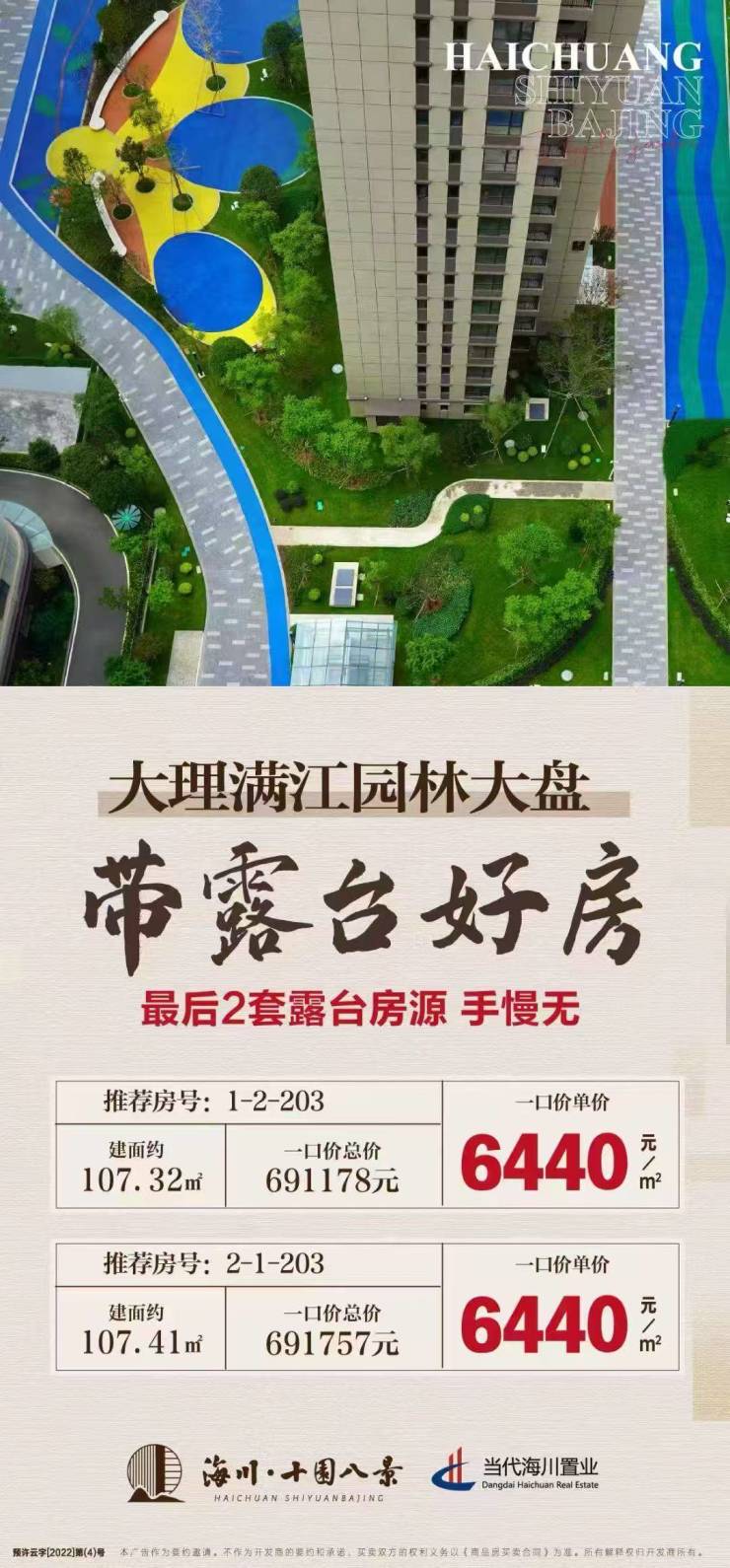 海川·十园八景,大理满江园林大盘,带露台好房推荐,一口价单价约6440元/㎡起!关注海川·十园八景的朋友可前往售楼处现场看房,咨询房源信息请拨打电话400-156-0036