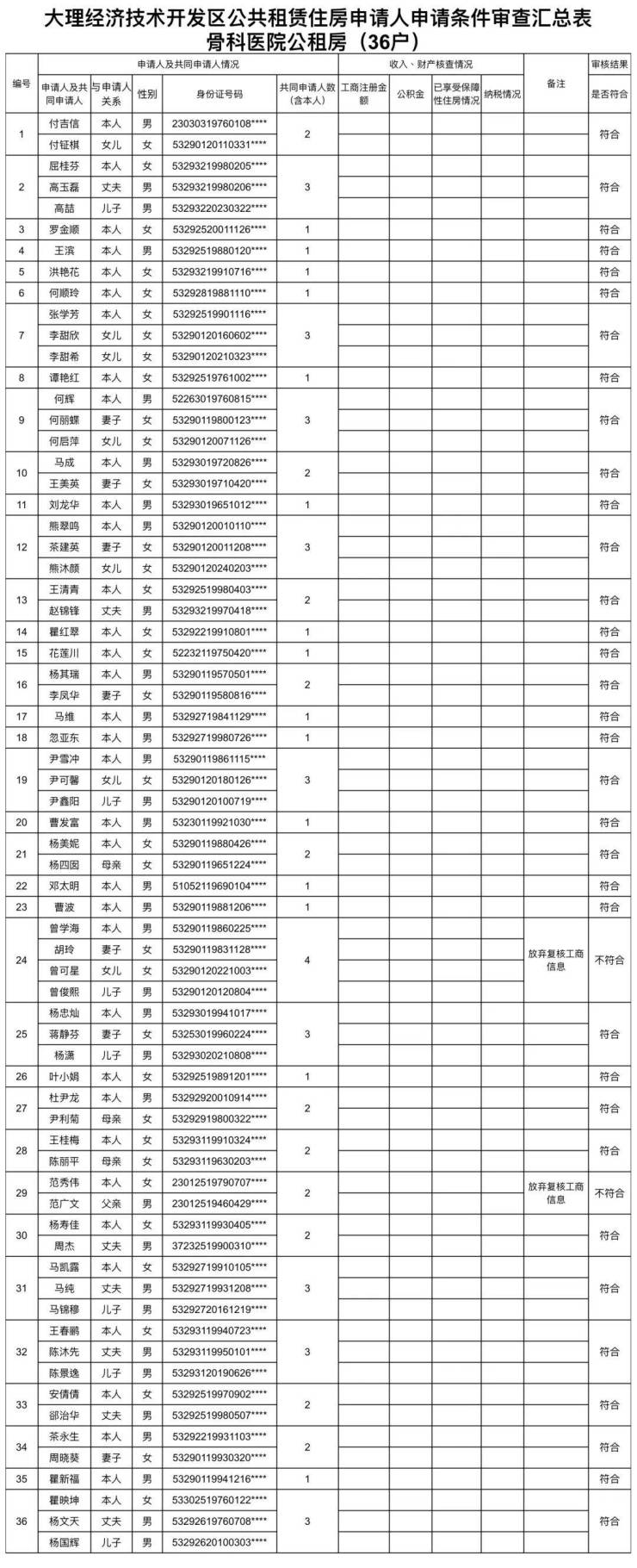 大理经开区2024年上半年度公共租赁住房审核情况公示