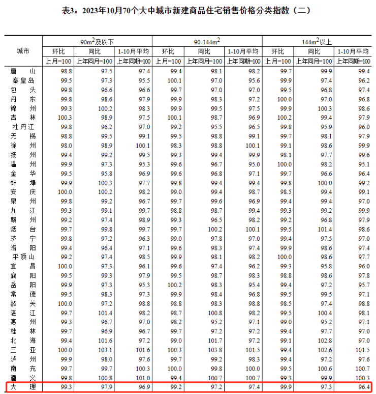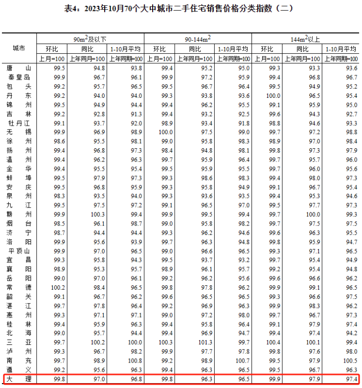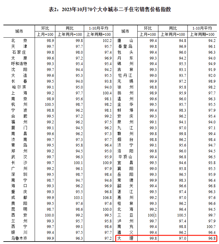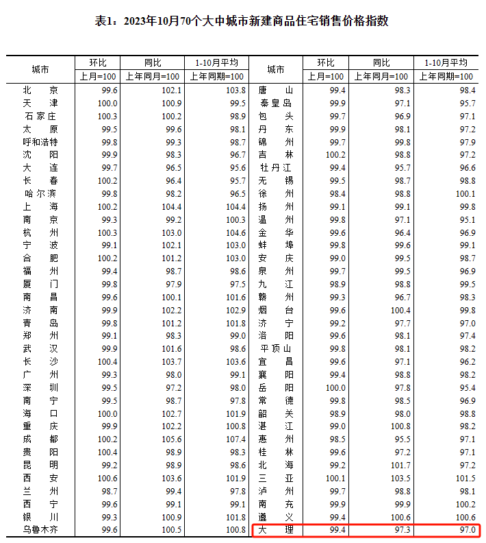 最新!10月大理新房价格环比下跌0.6% 二手房价格环比下跌0.2%