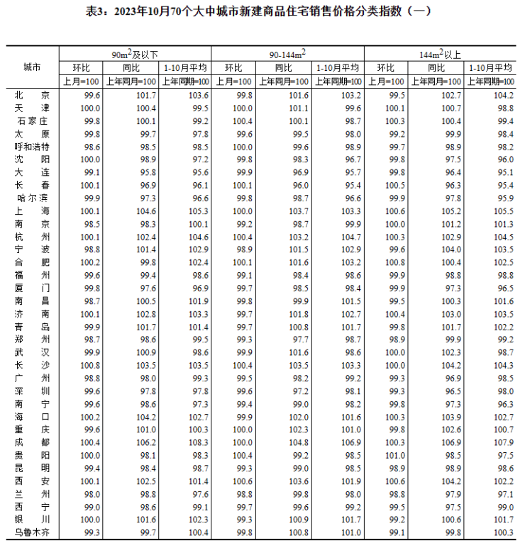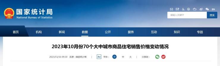 近日,国家统计局发布2023年10月份70个大中城市商品住宅销售价格变动情况!
