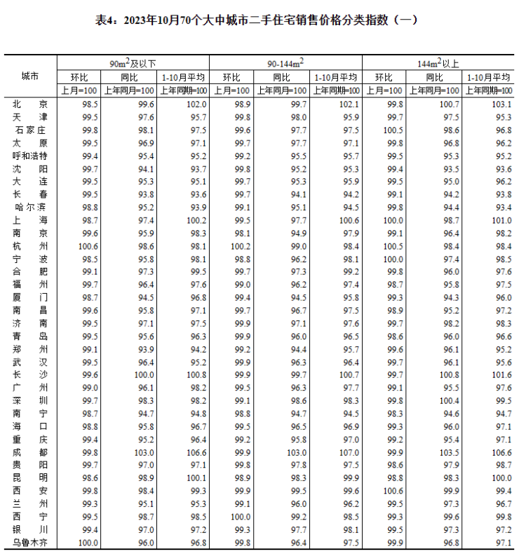 90-144㎡二手住宅销售价格环比下降0.2%,同比下跌3.7%。
