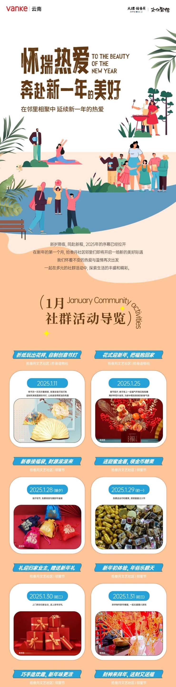 新岁降临,同赴新程,2025年的序幕已经拉开,在新年的第一个月,拾叁月社区邻里们即将开启一场新的美好际遇...