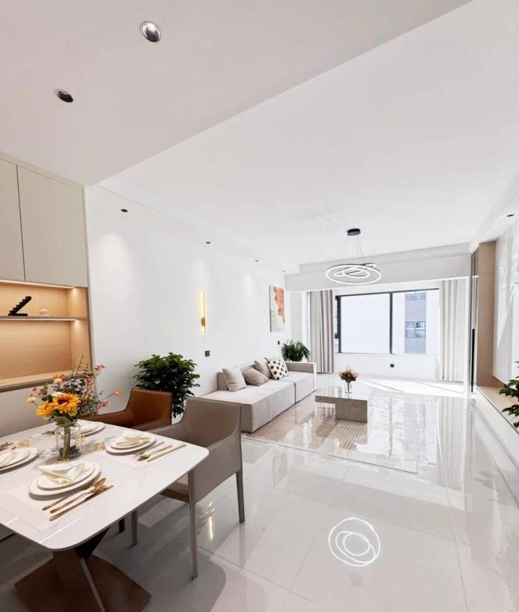 客餐厅阳台一体:视线无阻,空间流畅贯通。清风与阳光自由流动,营造出通透明亮的整体氛围,家的互动与温度在此凝聚。