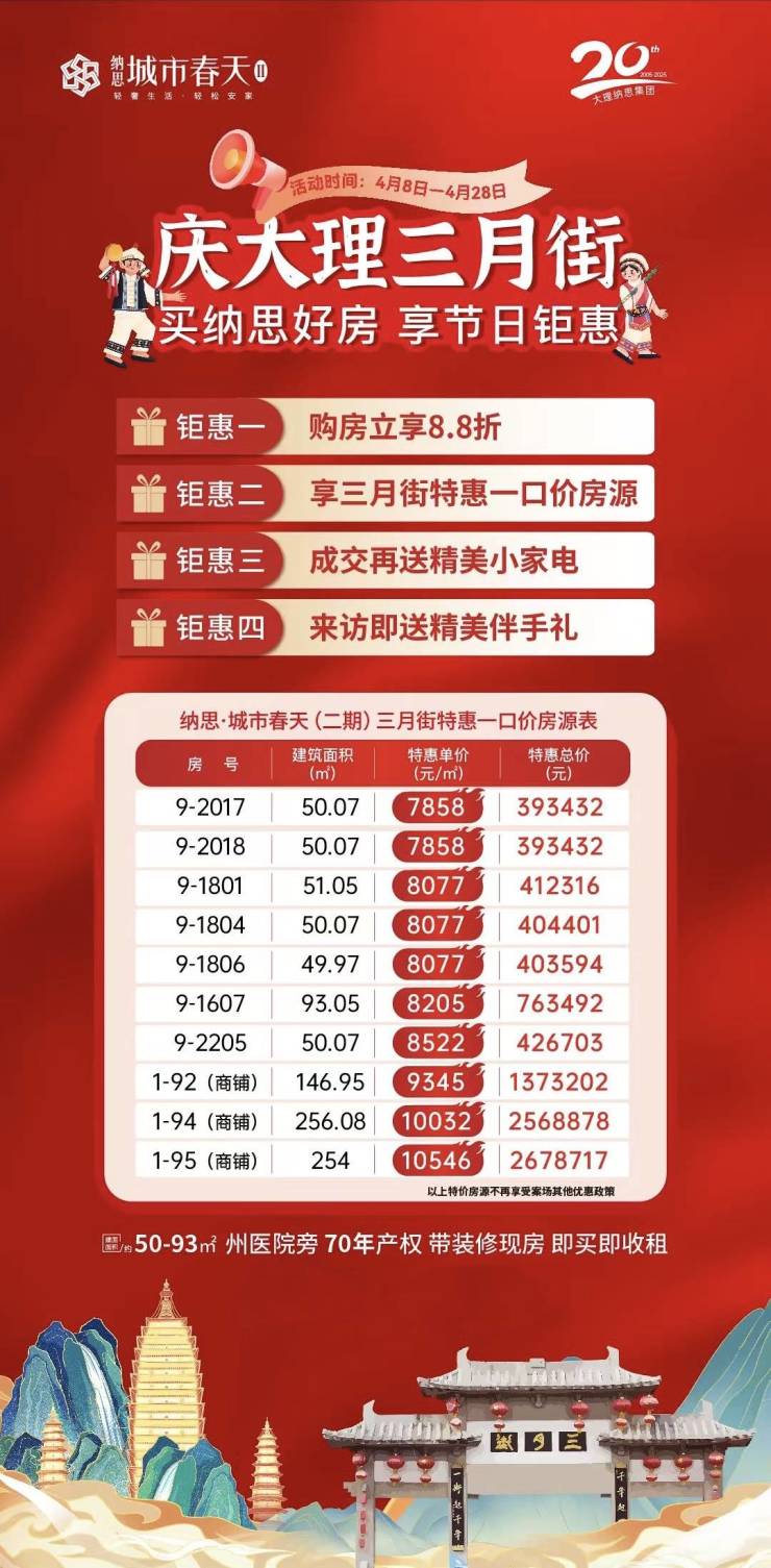 纳思·城市春天,建面约50-93㎡州医院旁70年产权带装修现房,即买即收租!关注纳思·城市春天的朋友可前往售楼处现场看房,咨询房源信息请拨打电话 4001560036 转 268142!