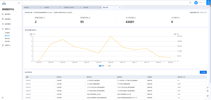 大理州数据中枢由数字大理公司建设运营,通过数据归集、治理及数据共享交换,以满足各单位在政务服务、营商环境、市场监管、经济运行、社会管理、金融服务等各个领域的场景应用,实现数据共享和业务协同。截至目前,数据中枢归集了公安、文旅、市场监管、发改、税务、供电、水务等单位相关涉旅数据累计2500万余条,建立了证照不齐预警、升限纳通提示、纳税达线提示三大模型、30余个指标模型,依据强大的算力和算法,为大理酒店住宿业的监管提供有效依据和智力支撑。同时,数据共享交换平台支撑了大理市文旅、税务、市场监管等单位产生数据调用723次,打通了单位、部门间的数据壁垒,提升了政务数据在旅游行业治理、辅助决策、公共服务、监测预警、宣传推广等方面的开发水平与应用能力。
