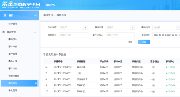 大理理政中心以精准高效处置一件事为核心,构建起城市运行实时监测、城市事件全流程分拨、城市应急指挥调度、大数据研判决策、数字大理建设成果展示的五大中心。目前,理政中心已入驻12345政务服务便民热线,接入民宿监管系统、智慧租车系统、大理市超级APP等应用,春节期间累计接收群众投诉事件工单办结率为98%,基于理政中心繁星城市数字平台实现了事件接入、自动化分类、分拨和跟踪,确保春节期间每一个诉求都能被迅速且正确地送达至相关单位、部门,且通过理政通领导驾驶舱相关负责人可进行事件认领、处置、结案、上报等,实现数据的共享和业务的协同,提高了群众投诉处理效率以及社会管理的透明度和公众满意度。