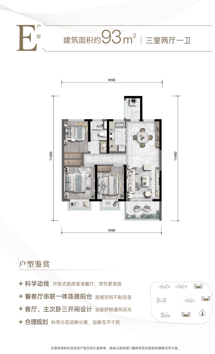 最宽超180米楼间距,观景视野更开阔;约3.4容积率,同样地块面积比别人少建3栋楼。