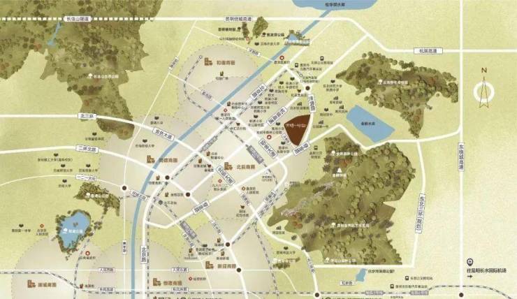 项目被金殿国家森林公园、呼马山郊野公园、世博园三大生态公园环抱,森林覆盖率在70%以上,负氧离子含量是翠湖的3倍,宛如城市绿肺。内部打造昆明首个五级台地景观社区,结合水系、植被形成立体园林,部分楼栋可直面金殿景观,实现 “推窗见绿、移步换景”,仿佛置身于森林公园之中。在繁华都市中,为业主提供一片静谧的绿色家园,让您在享受城市便利的同时,尽情呼吸新鲜空气,拥抱大自然。