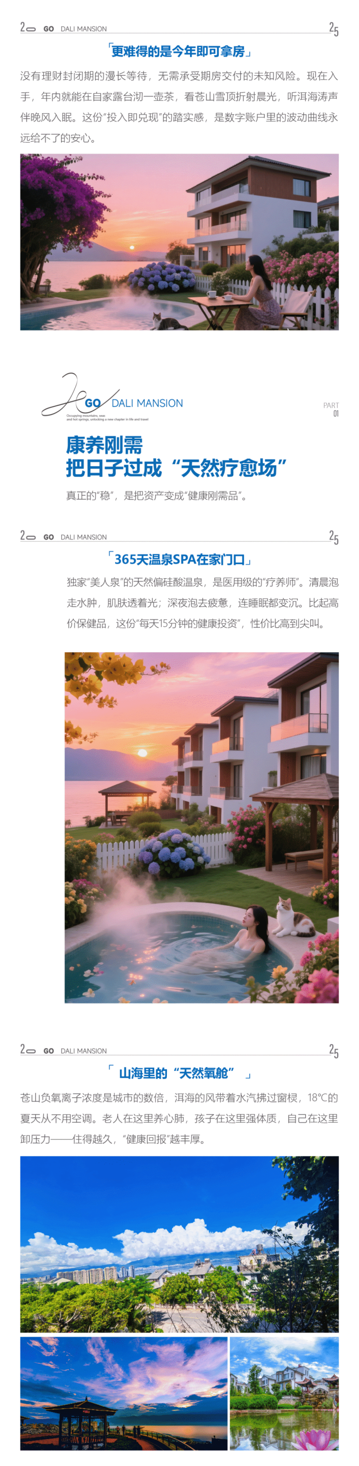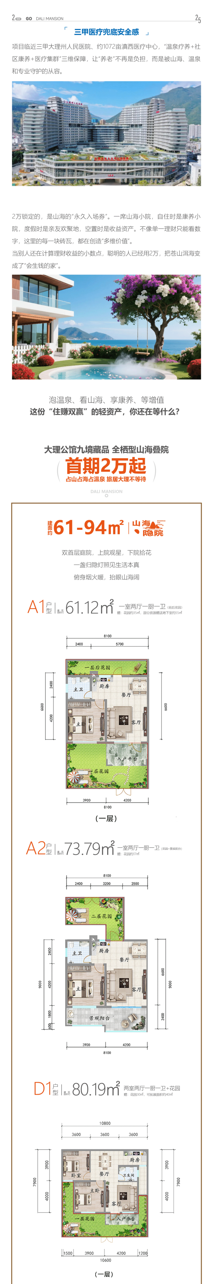 大理公馆,建面约61-94㎡山海隐院,建面约64㎡琉光平墅,建面约94-124㎡望海流萤,首期2万起占山占海占温泉!