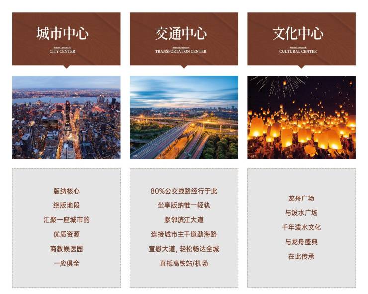 •项目介绍: 项目地处西双版纳最核心版纳泼水广场旁,拥有一线江景,与告庄对望。周边拥有大润发、沃尔玛、江边夜市、白象沙滩以及高尔夫球场等众多成熟商业配套。未来规划轨道交通从项目穿江而过直达告庄。 项目自身规划5.6万方轻奢商业,2.5万方城市广场,以及超星级地标酒店,项目致力于开发为版纳标杆豪宅产品。