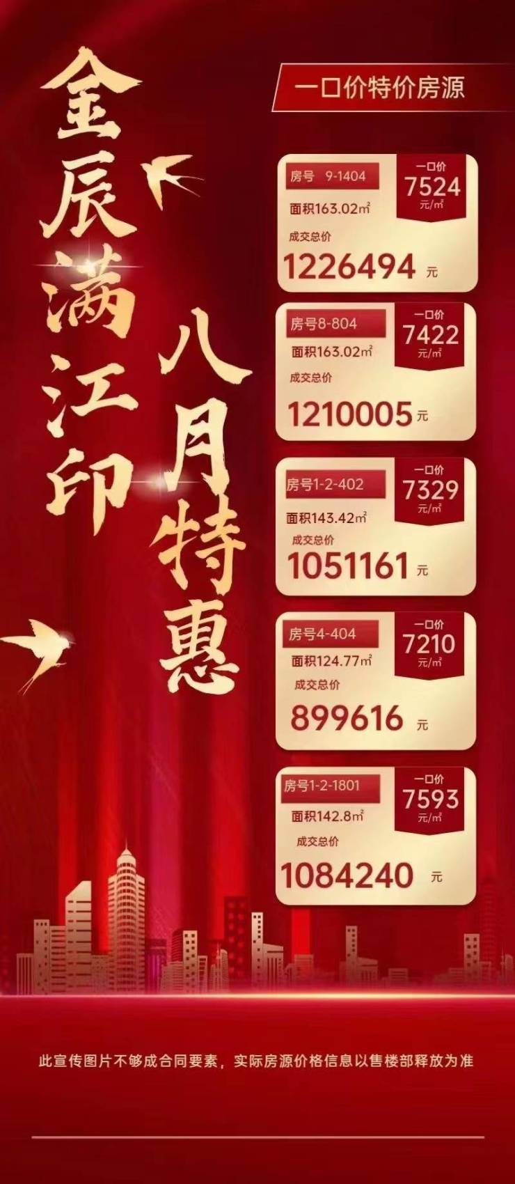 金辰·满江印 八月特惠 一口价特价房源推荐