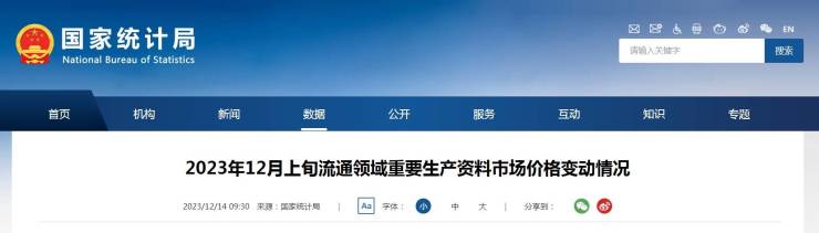 据对全国流通领域9大类50种重要生产资料市场价格的监测显示,2023年12月上旬与11月下旬相比,21种产品价格上涨,26种下降,3种持平。