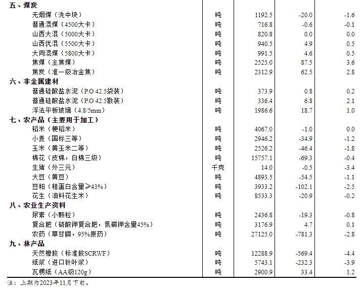 2023年12月上旬流通领域重要生产资料市场价格变动情况