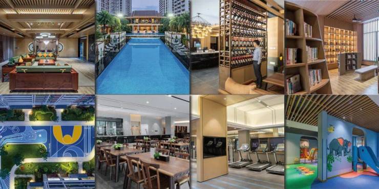 娱乐:约800㎡无边溢水泳池(成人泳池/儿童泳池)、儿童乐园 、 动感地带(健身房)、邻里棋牌室
