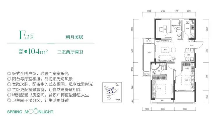 ▽E2户型 / 建筑面积约104㎡ 三室两厅两卫