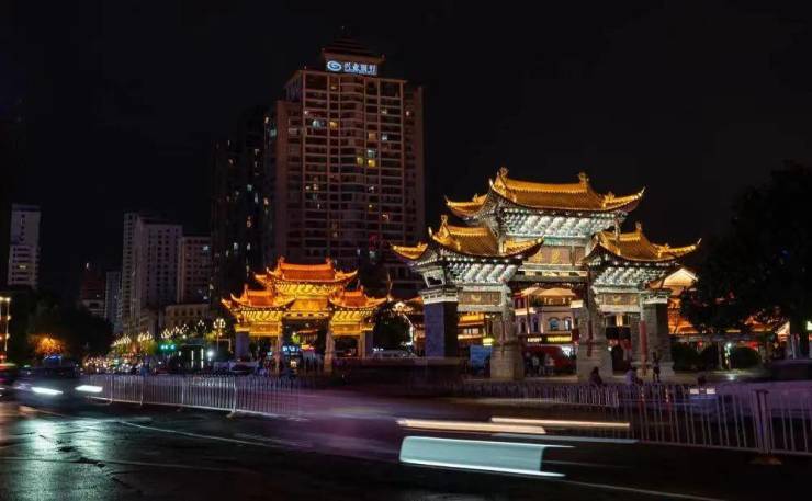 位于昆明市中心的金马碧鸡坊夜景 新华社记者 江文耀 摄