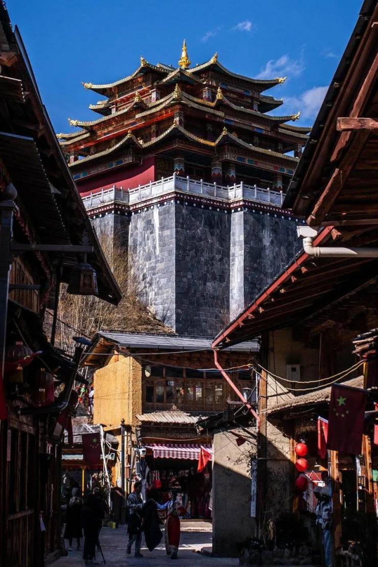 唐太宗贞观八年,吐蕃在大龟山上建立“独克宗”,在藏语中意为“石丘上的寨堡”。独克宗又名“宗绕丹噶波”“达维宗”。“达维宗”在藏语中意为月光城,与已经被毁的“尼旺宗”(意为“日光城”)遥相呼应,即“心中的日月之城”。