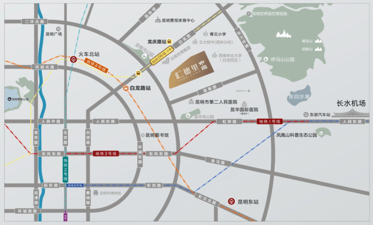 项目周边交通路网纵横交错,构建起立体高效的交通体系。东风路、人民路等城市主干道贯穿东西,串联起城市的商业中心与政务核心;北京路、西昌路等交通要道纵横南北,快速连接昆明长水国际机场、昆明高铁站等重要交通枢纽。地铁1号线、2号线等多条线路在此交汇,多个站点近在咫尺,高效便捷的轨道交通,让您轻松融入城市繁华脉络,无论是日常通勤、商务出行,还是休闲购物,都能快速畅达,从容掌控城市生活节奏。随着城市的不断发展,项目所在区域的价值持续攀升,成为城市精英争相入驻的黄金地段。