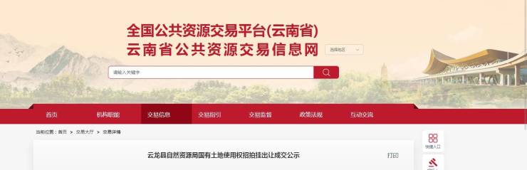 云龙县自然资源局国有土地使用权招拍挂出让成交公示