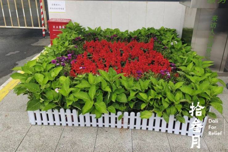 小区南门布置鲜花景观,用行动为服务增温,打造精致社区。