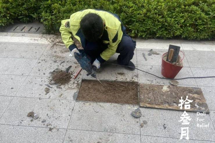 及时更换损坏地砖,用行动塑造美好园区。