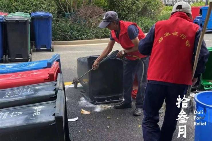 园区公共垃圾桶清洗,生活垃圾及时入桶,洁净从你我做起。