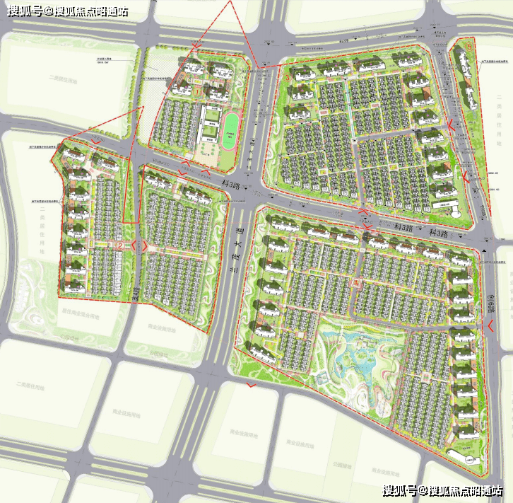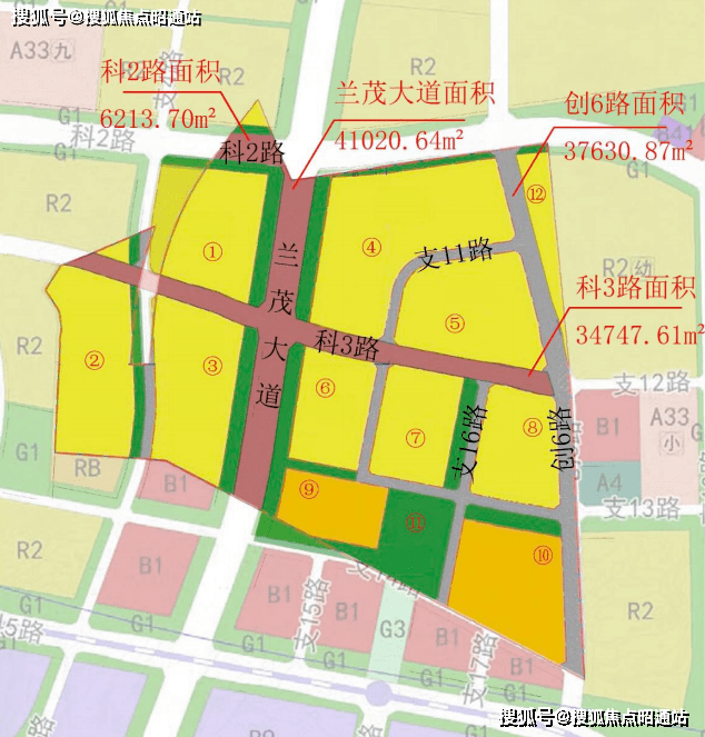 根据控规,兰茂大道、科3路和创6路将本项目分为七个地块,每个地块的容积率均为2.0,符合园区控规要求。