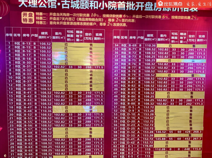 据搜狐焦点大理站获悉,大理公馆·古城颐和小院,华耀开盘当红不让,建面约109-154㎡精装院墅,现正热售!