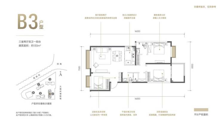 【便捷交通】项目以兴盛路、泰安路、洱河南路、洱河北路、宾川路形成了三横两纵的交通网络体系,在下关核芯,串联大理州全域。从项目出发,直线距离约2.2km便能到达大理高铁站;直线距离约11km便能到达大理机场;直线距离约12km便能到达大理古城及各风景名胜区。