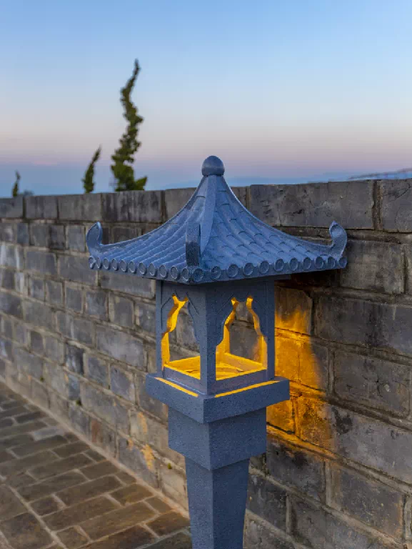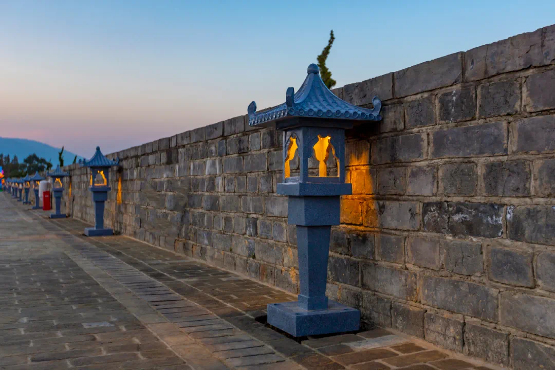 鼓声起,城墙上华灯随鼓声渐起渐亮