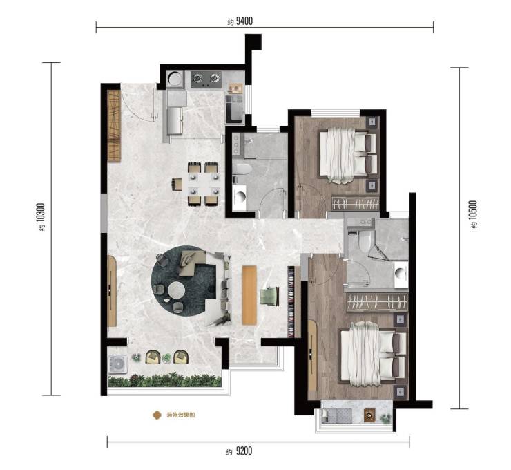端头产品,5.8米大横厅,前后双阳台设计,餐客厅分区,明厨明卫,大三房改善产品