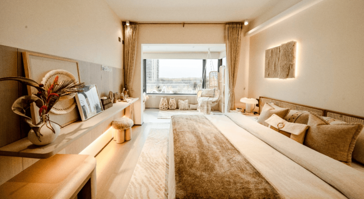 有质感的生活,不仅在于窗外的巨幕风景,所享的社区配套与资源,居住空间的设计同样考究。大理·拾叁月丨海与风新品楼栋不仅拥有巨幕中庭景观视野、私属健身房空间等外在条件,整体户型的设计与风格也十分优越。