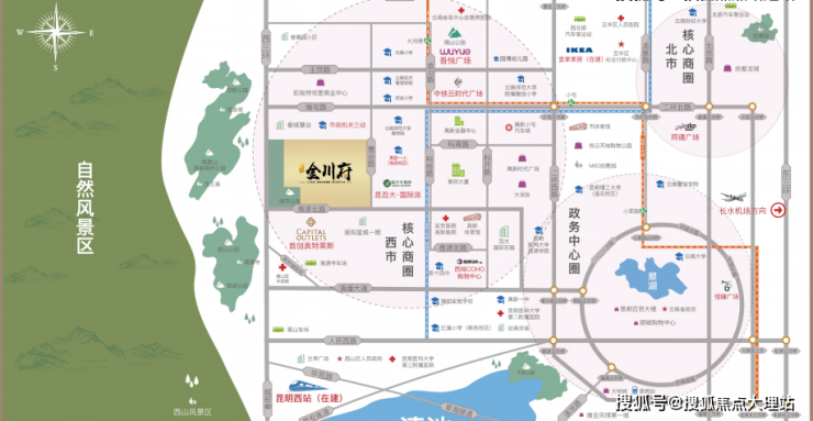 义承金川府所在的高新区与西北新城交汇点,经过昆明这么多年的发展,各项配套极速呈现:包括优良的干道、地铁条件,昆明知名的教育资源,吾悦广场、西城时代、宜家、奥特莱斯等知名大商圈,延安医院高兴分院、阜外医院等多所三甲医院、二甲医院都已呈现。