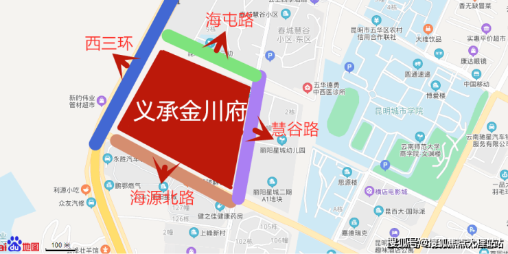 义承金川府项目地块位于昆明市五华区黑林铺街道办事处,南临海屯路,西临西三环,东靠慧谷路,北侧为规划道路,交通条件算的上很优越,既可以避开城区的拥堵,又能快速到达南、北市区及市中心。同时,项目正好处于高新区与西北新城的交汇位置,能享受高新区多年醇熟的配套外,还能享受西北新城区域发展、成长的红利。