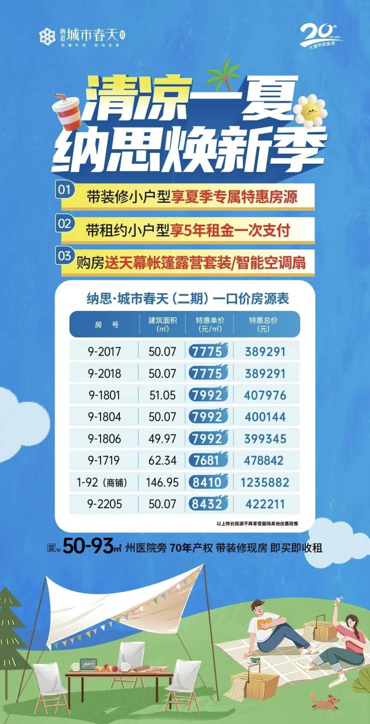 纳思·城市春天,建面约50-93㎡州医院旁70年产权带装修现房,即买即收租!关注纳思·城市春天的朋友可前往售楼处现场看房,咨询房源信息请拨打电话 4001560036 转 268142!