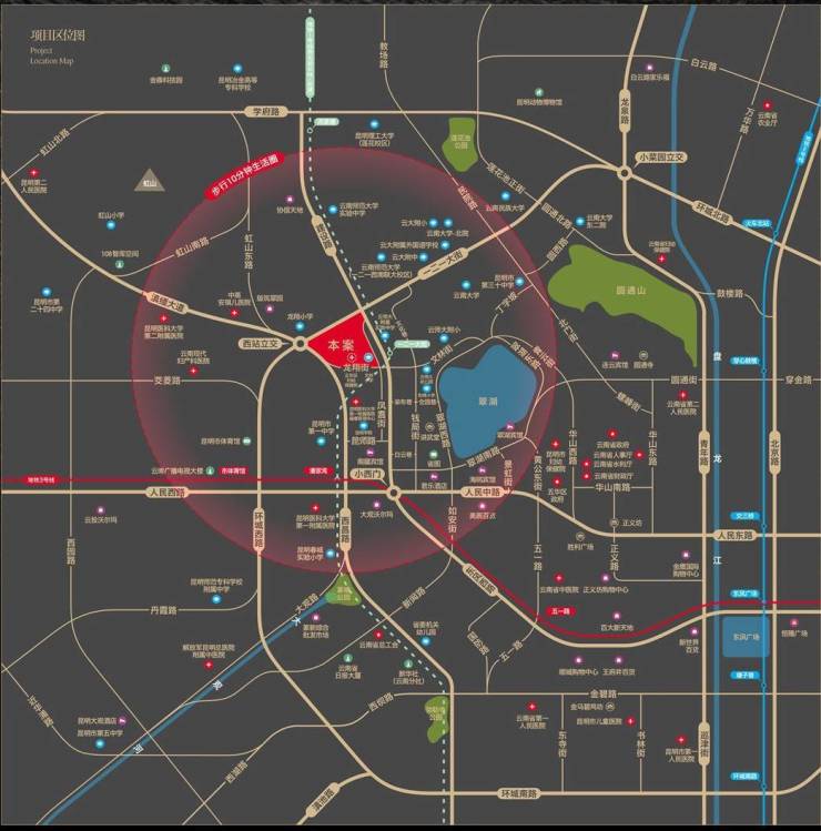 翠湖一品择址寸土寸金的一环核心区,距离翠湖直线距离约600米,占据着昆明3%的土地却拥有众多高量级成熟配套资源,所见即所享;