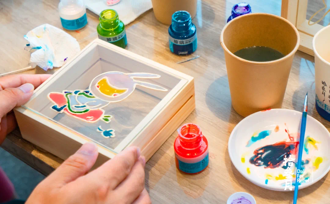 7月10日,玻璃绘画DIY于大理拾叁月火热开启,玻璃纯净透明,当画笔轻轻划过,天地间便多了一抹色彩,笔端起落,顷刻之间,剔透的玻璃换上层层盛装。不少家人朋友通过想象力的释放,DIY出了独属于自己的玻璃水杯与马赛克杯垫。