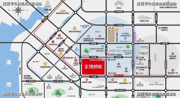 项目位于双塔板块南部,为南市区整体的核心位置,打造210万方理想城。周边以南亚板块、滇池板块、巫家坝板块、会展板块、三个半岛板块构成。周边以政务中心、自然生态中心、CBD金融中心、会展中心多中心环绕发展。
