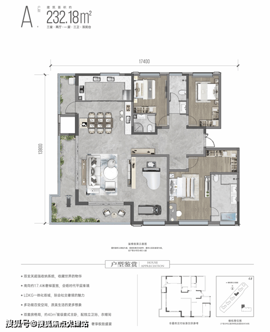 ④奢装大堂:对标五星级酒店的双入户大堂,超长展示面、富有艺术感的雕塑和酒店吧台式的岗亭,打造水准堪比国际一线的奢装豪宅,既有面子,又有里子。