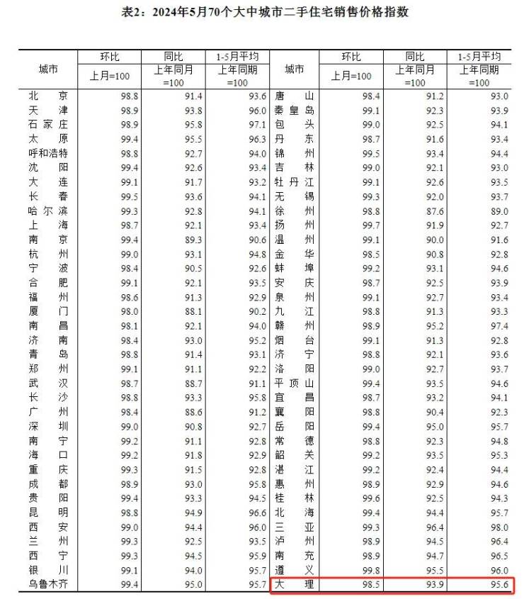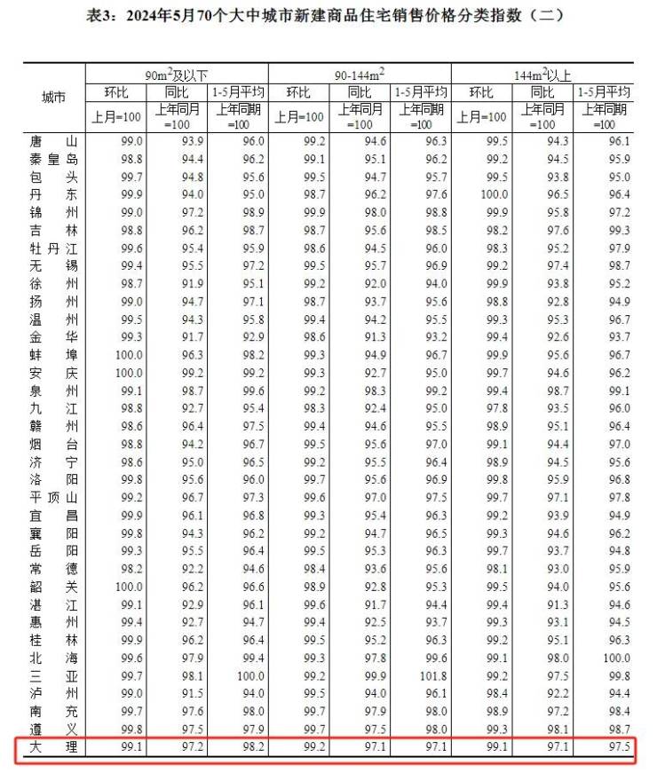 最新!5月大理新房价格环比下跌0.8% 二手房价格环比下跌1.5%
