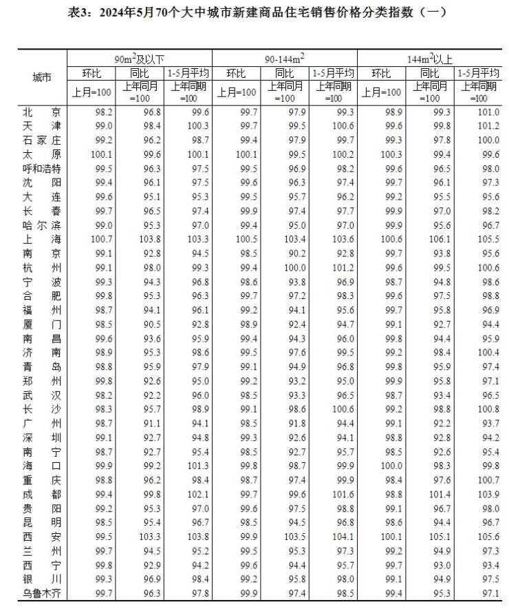 2024年6月17日,国家统计局发布2024年5月份70个大中城市商品住宅销售价格变动情况!