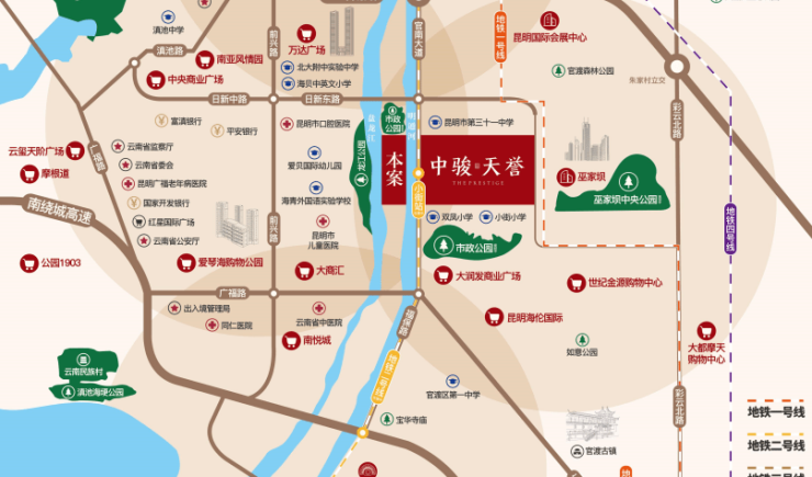 中骏天誉傲立昆明城市发展的黄金中轴,占据着城市核心地段的稀缺资源。项目周边交通路网纵横交错,城市主干道如同城市的脉络,紧密连接着各个重要区域。无论是自驾出行,在宽阔平坦的道路上畅行无阻,能够快速抵达城市各处的商务中心、高端购物中心或是文化艺术场馆;还是选择公共交通,多条公交线路在项目附近设有站点,为您提供多样化的出行选择,且临近地铁站,便捷的轨道交通可实现与城市各区域的无缝衔接,让您轻松融入城市快节奏的生活旋律。