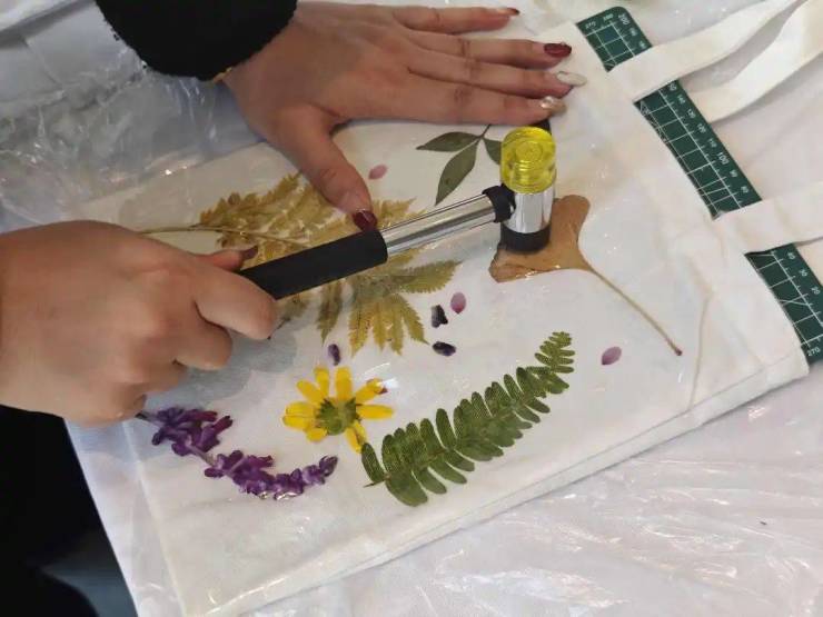 1月13日,大理王宫4122俱乐部举办了“把自然带回家”植物拓印DIY体验活动,老师现场教学植物拓印的方法,将植物标本通过反复敲打,印染在帆布袋和钱包上,体验非遗文化魅力。
