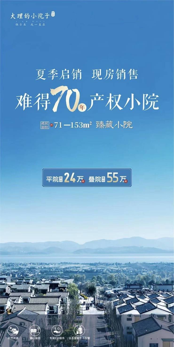 实力融创·大理的小院子中区,建面约71-153㎡臻藏小院,平院首付约24万起,叠院首付约55万起!更多房源信息可咨询营销中心销售,联系电话4001560036