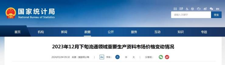 据对全国流通领域9大类50种重要生产资料市场价格的监测显示,2023年12月下旬与12月中旬相比,24种产品价格上涨,24种下降,2种持平。