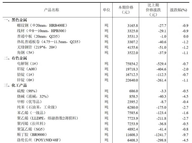 2025年4月中旬流通领域重要生产资料市场价格变动情况