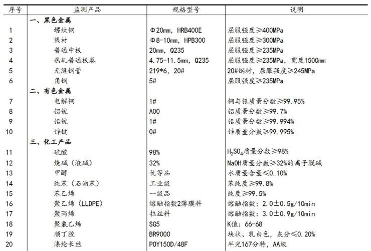 流通领域重要生产资料市场价格监测内容包括9大类50种产品的价格。类别与产品规格说明详见附表。